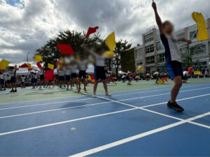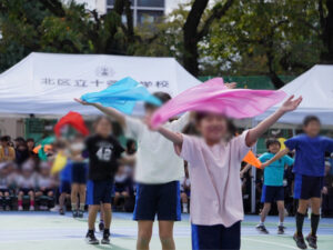 4年生の「Go!Go!十条フラッグ!」では、大きく旗を振る力強い動きと、仲間との息の合ったフォーメーションが迫力満点。赤と黄色のフラッグが風になびくたび、子どもたちの集中した表情と一糸乱れぬ動きから、これまでの練習の成果とチームの絆が伝わってきました。