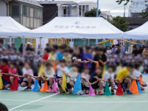 最後には、全校児童が参加する「難易度MAX!十条玉入れ」が行われました。