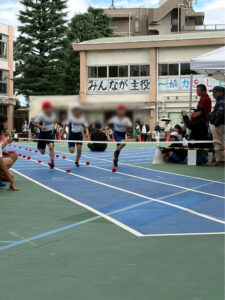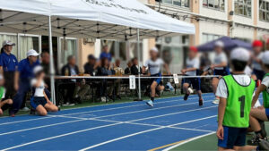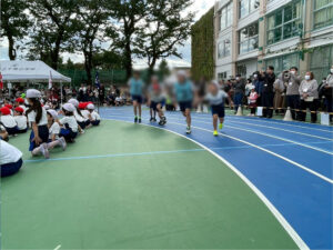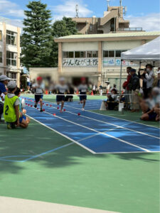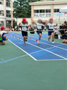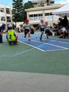 各学年ごとに行われたかけっこでは、スタートの合図とともに子どもたちが一斉に走り出し、ゴールでは笑顔と歓声があふれました。