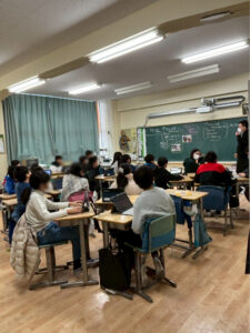授業後には各教室で保護者懇談会が行われ、担任の先生から授業のねらいや子どもたちの様子が紹介されました。また、保護者同士でも家庭での子供たちへの声がけの工夫や悩み、また子どもたちの普段の様子を共有するなど、和やかな中にも実りのある意見交換が行われました。
