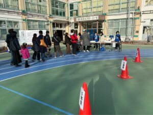 また、保護者鑑賞日の受付や会場案内はPTAが担当し、多くのサポーター委員の皆様にご協力いただいたおかげで、スムーズに進行することができました。正門前の警備や入校証の回収は、おやじ連の皆様が担当してくださり、寒風の中、安心して行事を行うことができました。ご協力ありがとうございました。