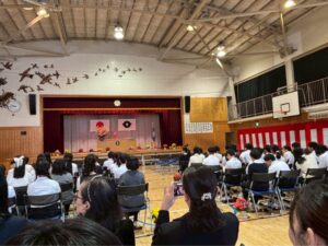 式の終盤には、五年生と六年生による合唱が披露され、未来へ羽ばたく力強い歌声が会場いっぱいに響き渡りました。