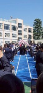 校庭での最後の時間では、名残を惜しむ姿があちらこちらで見られ、担任の先生からの「がんばれよ」という言葉に背中を押され、子どもたちは新たな一歩を踏み出しました。
